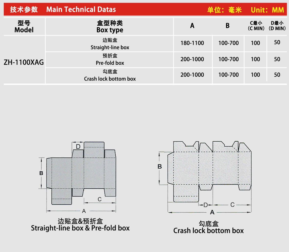 ZH-1100XAG FOLDER GLUER WITH CRASH LOCK BOTTOM & PREFOLD (MODULAR)