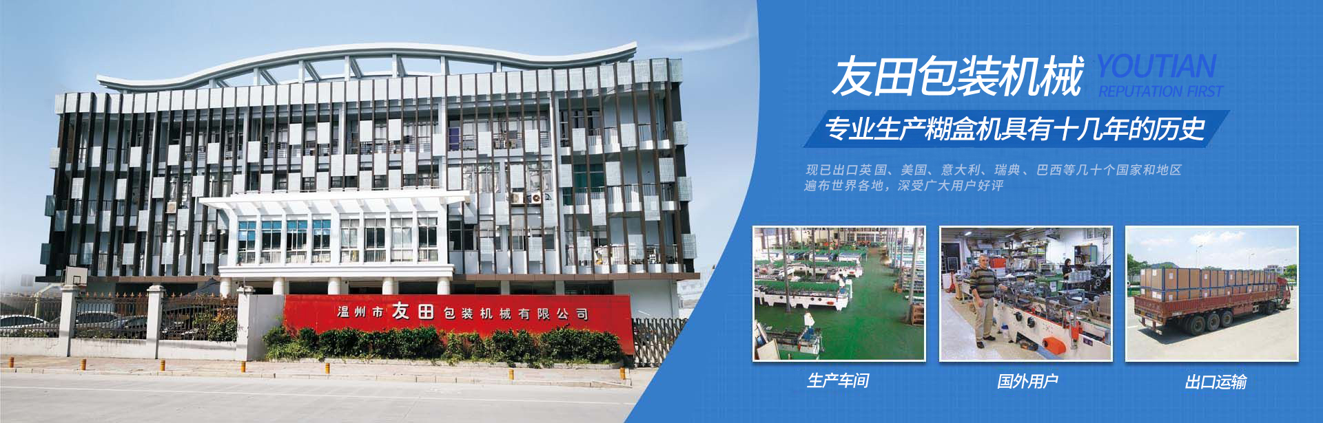 温州市友田包装机械有限公司位于温州市瓯海区金竹工业区霞竹路1号,紧靠温州市瓯海大道高架桥,该大道直通温州机场和火车南站(动车站),交通十分便利。公司占地十几亩。公司专业生产糊盒机具有十几年的历史,...